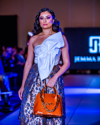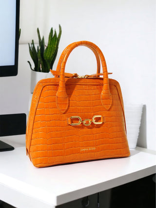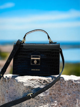 FLURINSA CROC-EFFECT GLOSSED LEATHER HANDBAG